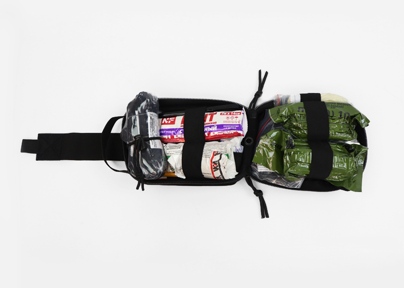 Аптечка представляет собой комплект изделий, позволяющий оказывать первую помощь, который поставляется в подсумке «Волонтер-7».