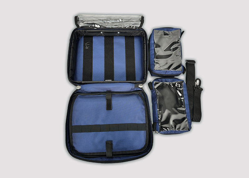 Внутри сумки имеется специальная система фиксации вложений. Наличие креплений для кислородного баллона (объем 1л), мягкие валики под редуктор и 2 кармашка для вложения кислородных масок.
