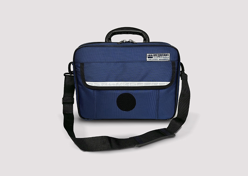 Изготовлена сумка из водоотталкивающей синтетической ткани, стойкой к обработке и дезинфекции.
