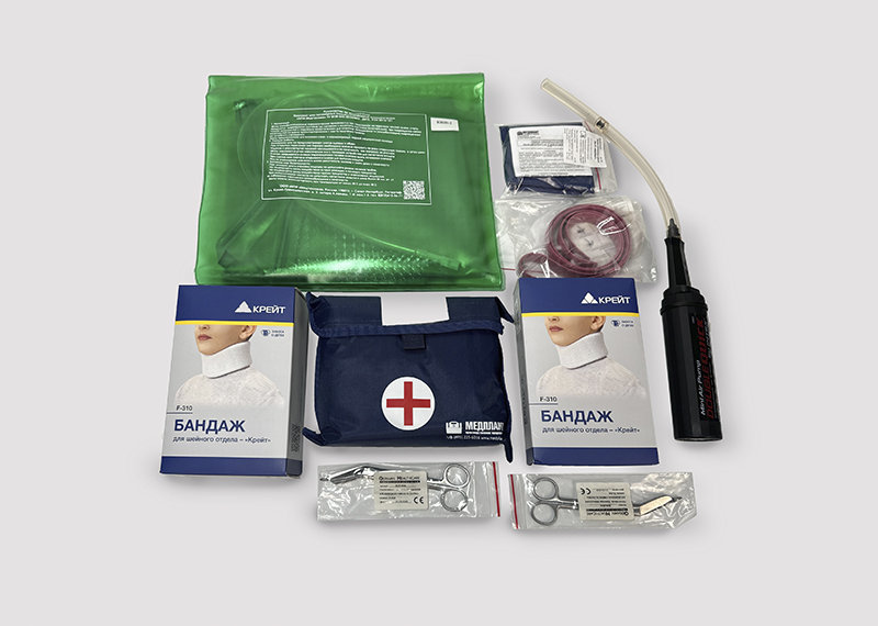 Комплектация Укладка для оказания медицинской помощи несовершеннолетним в образовательных организациях (травматологическая подростковая) УПНтп в чехле-сумке ЧСп-01 с взрослым матрасом вакуумным